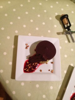 For the final course I wanted to do something unusual (although I’m not sure anything can top the pigs ears I once insisted upon serving up for one of my parents dinner parties, thank you so much to them for putting up with that). I chose an Avocado mousse with dark chocolate ganache but decided that that simply wasn’t enough. http://www.greatbritishchefs.com/recipes/avocado-lime-chocolate-parfait-recipeSo I accompanied the dish with a raspberry coulis, chocolate shard and pine nut brittle for added crunch, surprisingly delicious. (although it did melt a little in the heat of the kitchen).