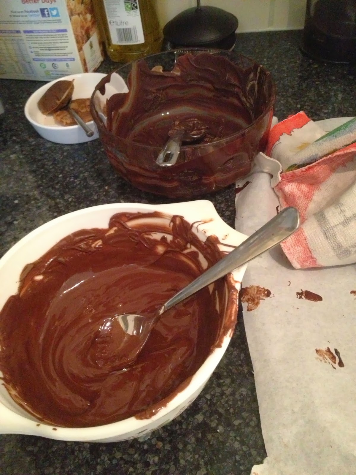 4. Melt the butter and chocolate together in a large heavy based saucepan.
