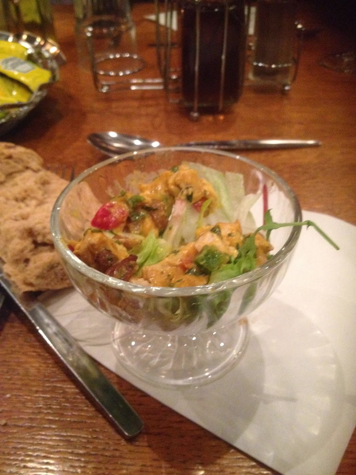 I sat at a table with several seasoned Caius hall veterans as Caius students are forced to have a certain number of these sit down meals per term. They knew the form, whether to go for soup or salad, when to turn your nose up at dessert and wait for the muller rice and when really desperate, you can always cover your meal with the huge mound of ketchup/mayonnaise/salad cream sachets in the middle of the table at every formal. We started with a coronation chicken salad which was actually alright. Despite the slightly limp presentation and lettuce leaves it had some juicy sultanas and the sauce was tangy and thick. However this was slightly let down by the stale bread and pitiful amount of butter, I was hungry coming to this formal from a busy day.