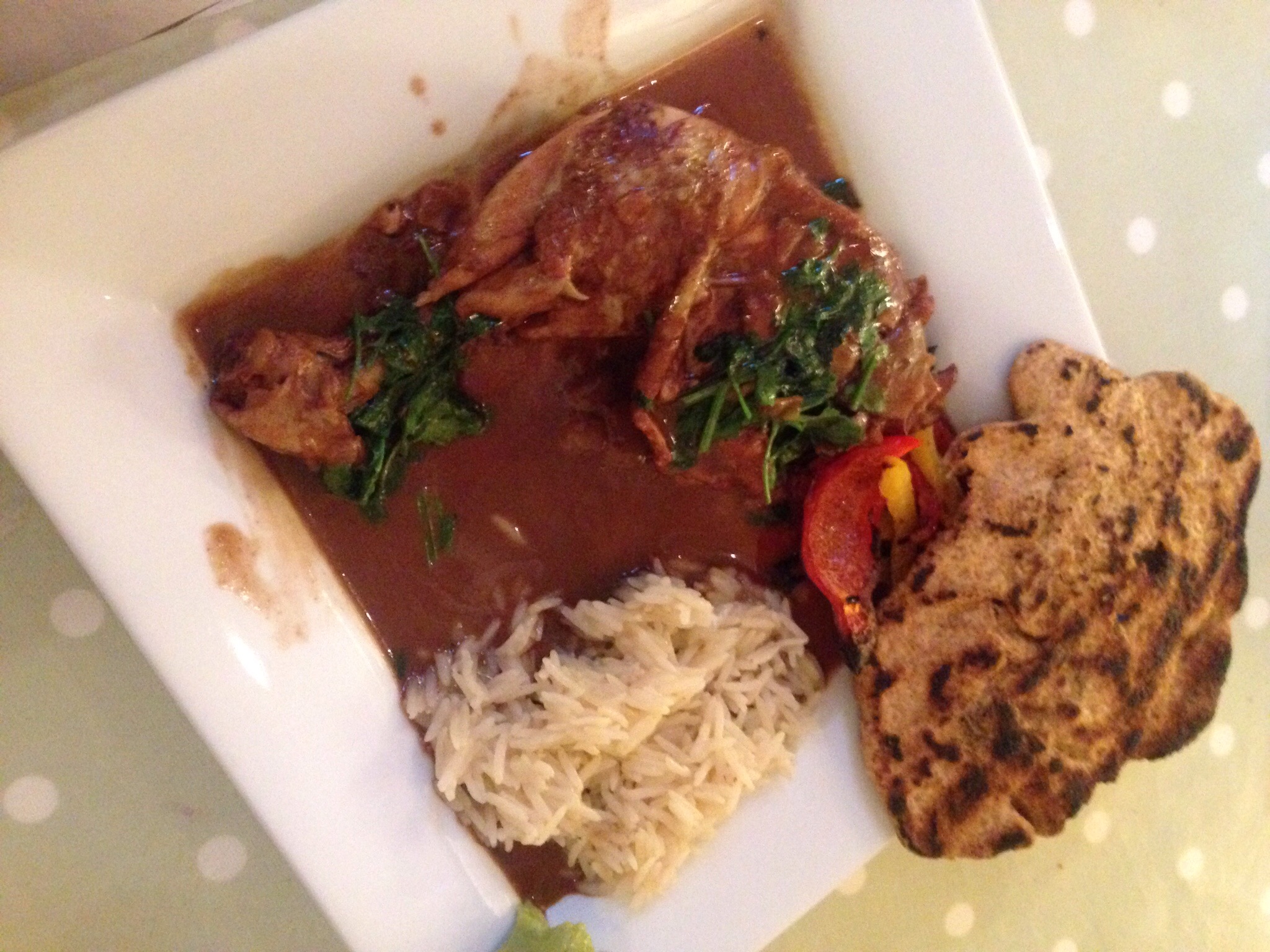 1. Sprinkle chicken with sea salt, pepper, lemon juice and olive oil and top with 1/2 crushed garlic clove each. Roast for 12-15mins at 180*C, leave to rest.